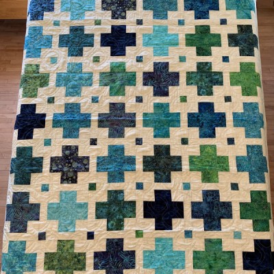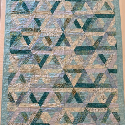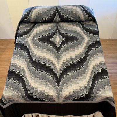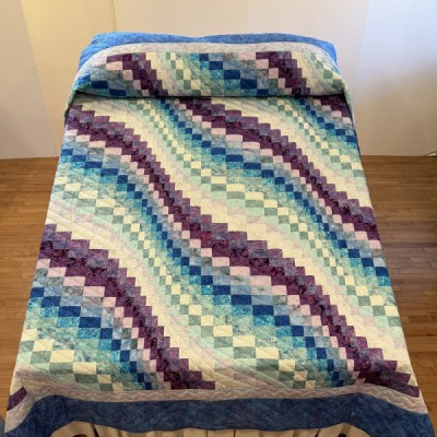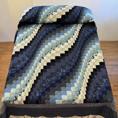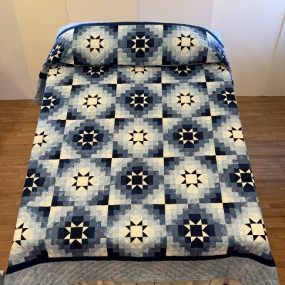 The more than 2,000 blocks are hand-quilted across the diagonal, enhancing the movement of the piece
