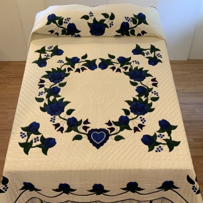 Precise piecing and intricate hand-quilting make this quilt a stunning heirloom.