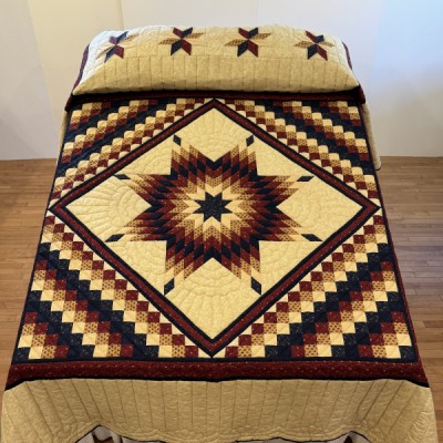 This quilt marries the popular Lone Star pattern with a Boston Commons pattern.