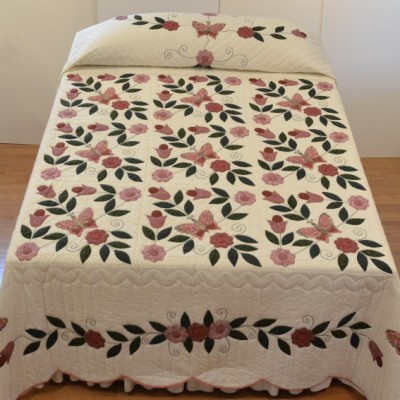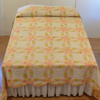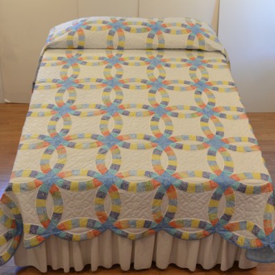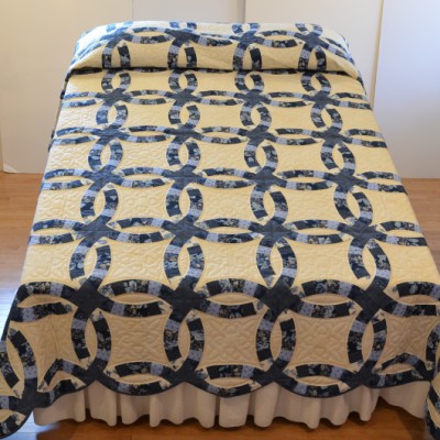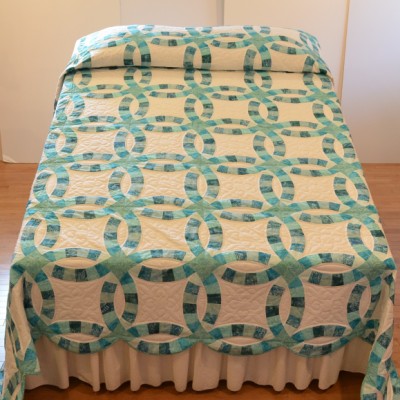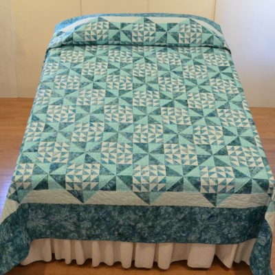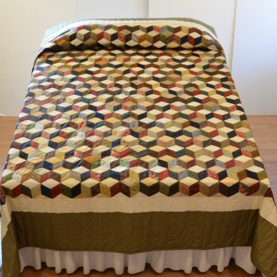 The more than 2,000 blocks are hand-quilted across the diagonal, enhancing the movement of the piece.